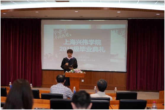 2018级英语专业文语晟同学代表毕业生作了发言。他首先向精心培育他们的老师和教练们致以衷心的感谢!向多年来辛勤教育、养育他们的父母致以最崇高的敬意! 向共同走过4年的同学们致以最真诚的祝福!接着认真回顾了自己四年来大学生活的点点滴滴、付出和收获,以及对博雅教育的感知和肯定。表示博雅教育与“自由、激情、致良知”的校训是兴伟学子间最热门的讨论话题;学院独特且魅力非凡的教育理念和校训如同没有标准答案的期末试卷,激励他们在兴伟这座特殊的学院里不断寻找合适的解答,今天,他也将交上对博雅教育感知和践行的答卷:即合理运用身边的资源,将技能逐步磨练成能力,通过支点无限放大自己的优势,最终成为最好的自己。同时,发言中也分别谈到了对学院校训的理解和感悟:即自由是心态,是状态,是选择,也是不作选择,它可以是任何词性,但决不代表我们一开始认为的随心所欲。激情是校训中最容易理解、最难以落笔、最需要坚持的。正是激情让他一直努力去实现心中最单纯、最炙热的愿望和梦想。致良知让他学会了感恩过去,用感激的心拥抱过去,因为是过去造就了今天的他们;让他领悟了学院“做人第一,重视修业”的办学理念,自己也会努力做一个社会需要、对社会有所贡献的人。发言最后,文语晟同学祝愿学校越办越好,也祝学弟学妹们学有所成。